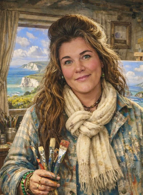 Lusea Warner-Gale is a contemporary British landscape painter best known for her bold, colourful scenes inspired by the coast and countryside. A Central Saint Martins graduate, her expressive work has been exhibited internationally, from London and Paris to New York. She now lives and works on the West Dorset coast, where the landscape continues to fuel her vibrant, joyful paintings.